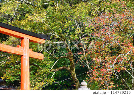 京都 美しい紅葉の吉田神社の境内(京都市左京区)