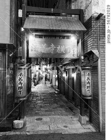 大阪ミナミ 法善寺横丁の夜(西側出入口・モノクロ)
