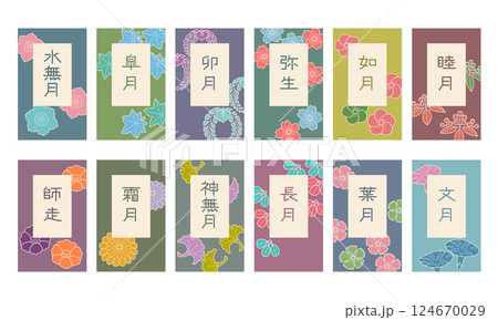 旧暦12ヶ月 和風月名と季節の花の見出しデザイン