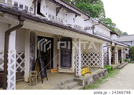新緑に包まれた藤枝市にある道の駅 玉露の里の長屋門前の風景(静岡県)