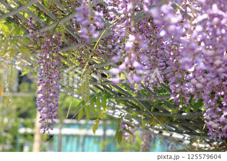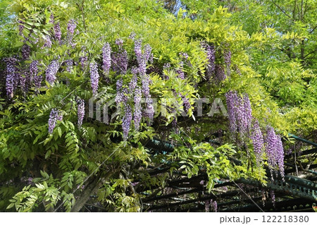 藤棚に満開の花を咲かせる藤の花