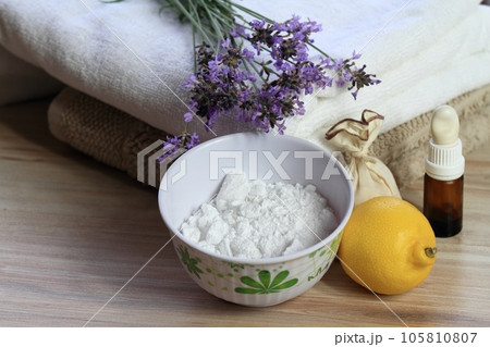 Banner with lavender cosmetics products and place for text. Home body skin care, Spa setting