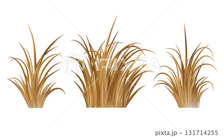 Dry brown grass. Dead field and marsh plants on meadow and beach. Prairie scene isolated on white background. Autumn realistic farm vegetation.