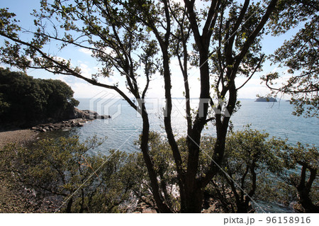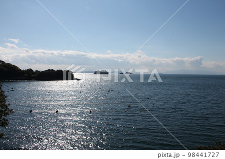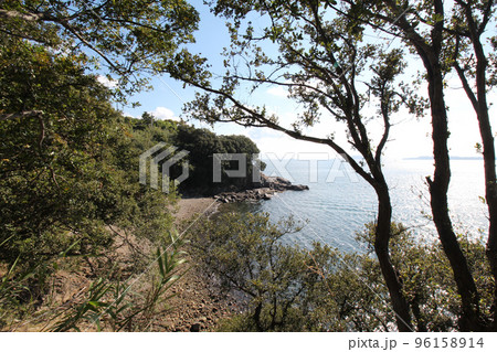 たつの市室津の楫取(住吉)社前の瀬戸内海 南方面東側 兵庫県たつの市御津町室津