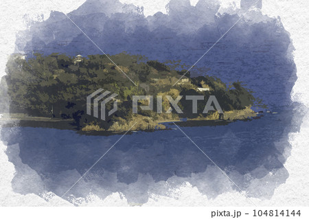 水彩画風 万葉の岬からの室津半島 藻振鼻 兵庫県相生市