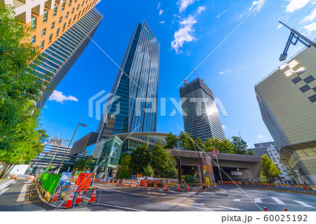 日本の東京都市景観 虎ノ門ヒルズやB2出口、虎ノ門ヒルズステーションタワーなどを望む