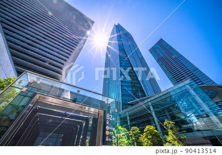 日本の東京都市景観8月15日。虎ノ門ヒルズなどを望む。新時代へ、希望の光