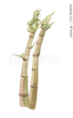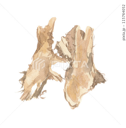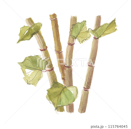 水彩で描いたイタドリの根 虎杖根