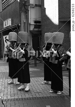 深編笠をかぶり尺八を演奏する虚無僧