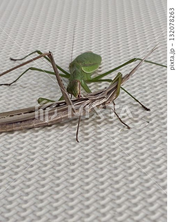 ショウリョウバッタを食べるカマキリ