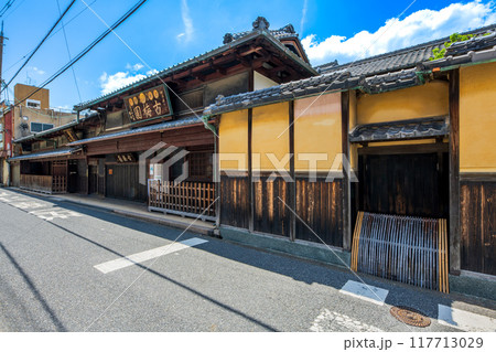 奈良 橿原市 今井町 本町筋の茶店が並ぶ町家(「今井まちや館」から西方向)(夏)