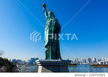 東京 港区台場の都市風景 お台場海浜公園の自由の女神像