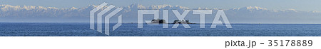 (とやまビューポイント)富山 氷見からの海越し 雪の立山連峰 5月