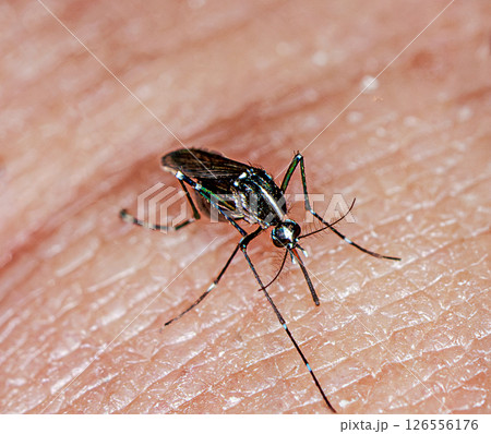 吸血するヒトスジシマカ 蚊