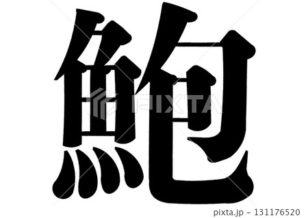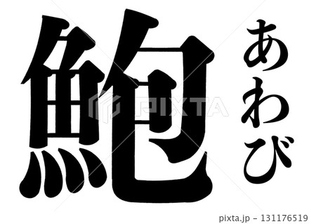 鮑の手描き筆描きイラストと文字素材セット モノクロ