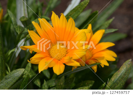 黄色いガザニアの花の満開の風景