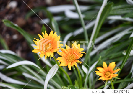 満開のガザニアの花の風景