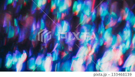 Defocused crystal flash. Shimmering glow texture. Rainbow bokeh light mix color. Prism sparks abstract purple blue neon background.