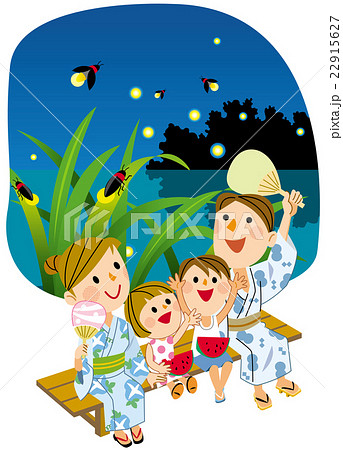 ホタルの光。夏イメージのイラスト。