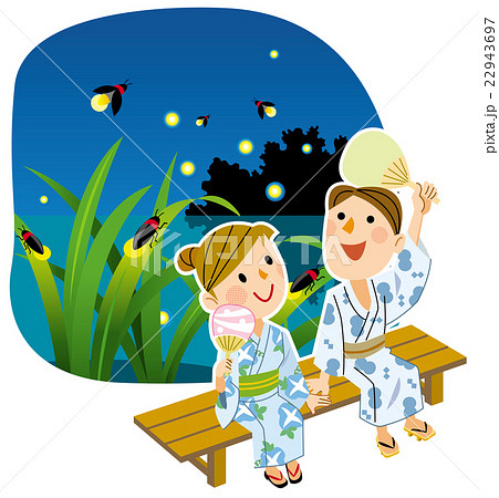 浴衣の女性 夕涼み 源氏ホタル 蛍 ホタル狩り
