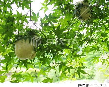 〔福井県/岐阜県・6月〕夜叉ヶ池の風景 夜叉ヶ池周辺の木々に産み落とされたモリアオガエルの卵たち