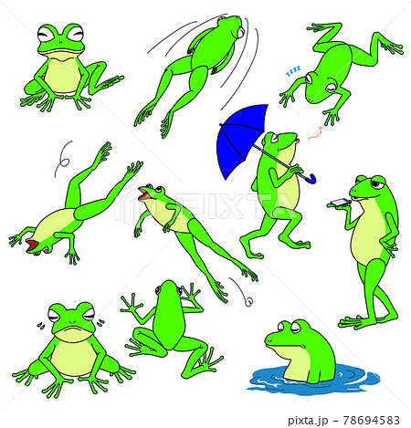 蛙のイラストの10種ポーズセット