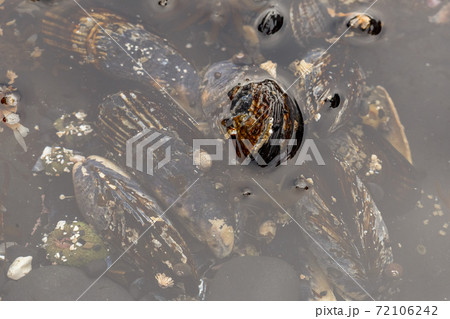 Close up of a little sea mussels.