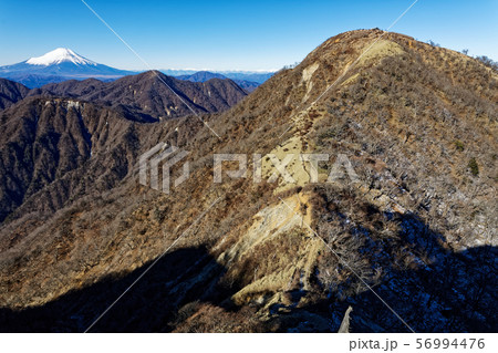 冬の丹沢稜線から見る富士山と蛭ヶ岳