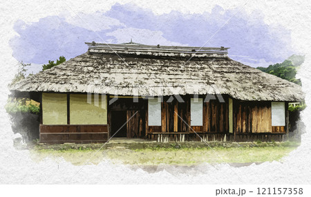 水彩画風 伊豆 蛭ヶ島公園 歴史民俗資料館 静岡県伊豆の国市