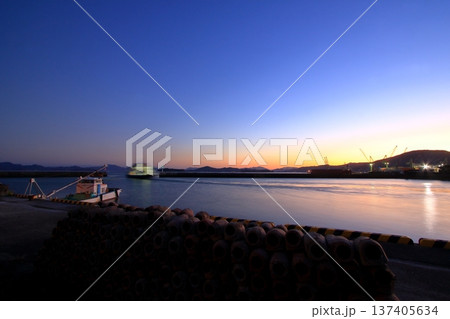夕暮れ時の安芸津港