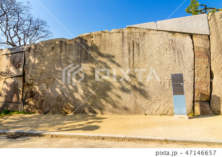 大阪府 大阪市 大阪城公園の中にある巨石と大阪城