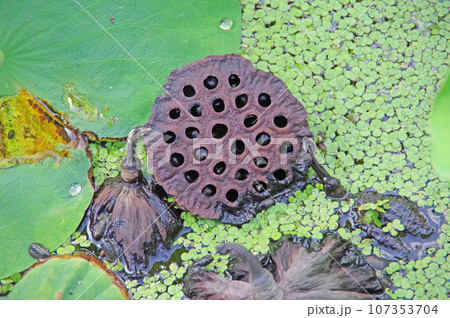 ハスの花托・枯れ草(栗林公園/香川県高松市)