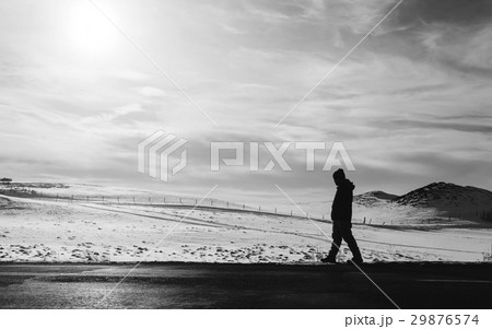 a man walking away on an empty desolated road