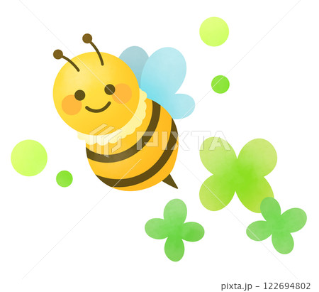 かわいいミツバチと四つ葉のクローバーのイラスト
