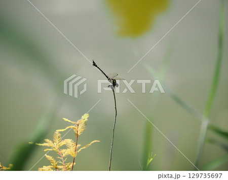 Dragonfly, Gompha vulgaris Gomphus vulgatissimus on the plant by lake morning sunlight in summer