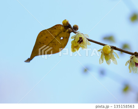 ロウバイの花 マクロ 青空バック
