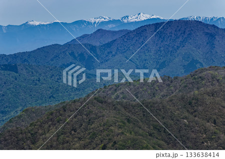 丹沢・塔ノ岳から見る御正体山と南アルプス・塩見岳