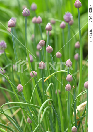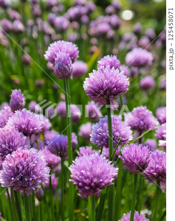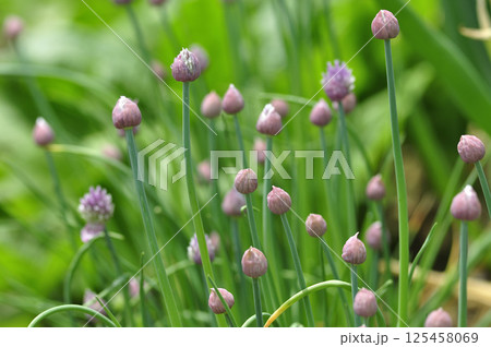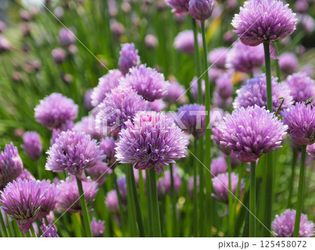 夏の庭に咲く紫色のカワイイ花 チャイブ