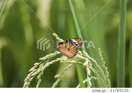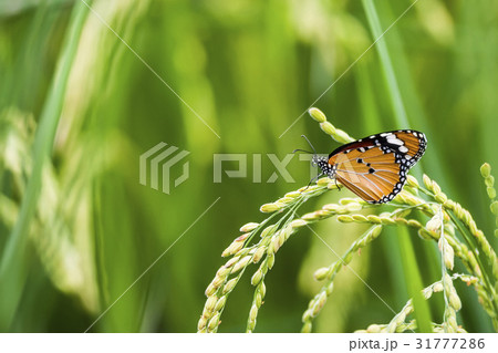 在稻穗 葉上 休息的 蝴蝶