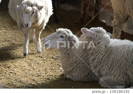のんびりと過ごす羊