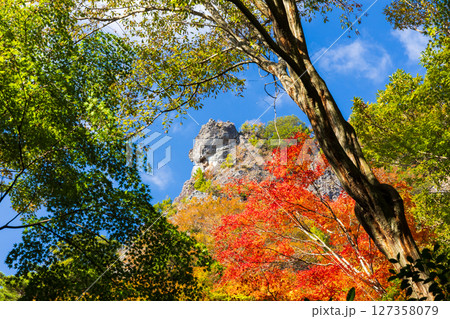 秋の小豆島 紅葉の寒霞渓 表十二景(蟾蜍岩)