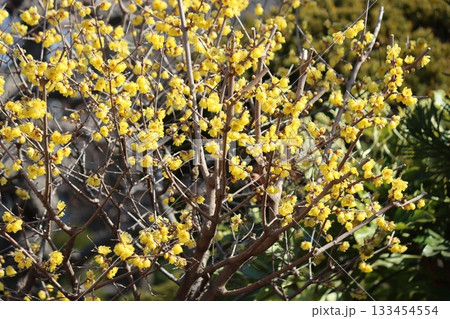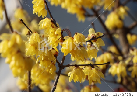 真冬に開花するロウバイの花