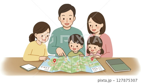 家族みんなで旅行の計画、楽しい相談に笑顔が弾む