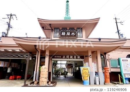 水間寺(水間観音)への参道に歓迎看板がある風景 大阪府貝塚市水間