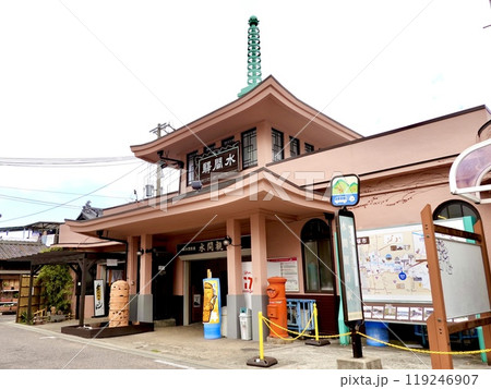 水間鉄道の終点 水間観音駅の独特なピンク色の駅舎の風景 大阪府貝塚市水間