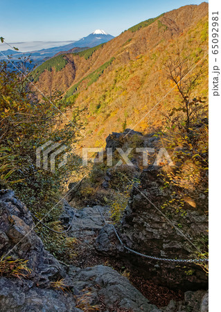 丹沢表尾根・行者岳の鎖場と富士山