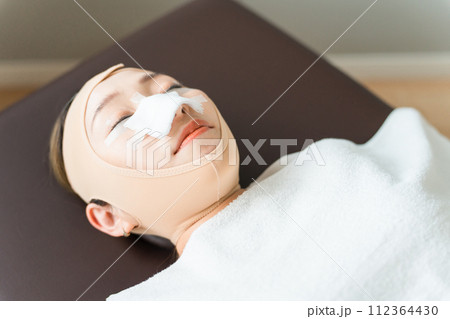 美容外科で整形手術を受けてダウンタイムを過ごす女性(経過観察)