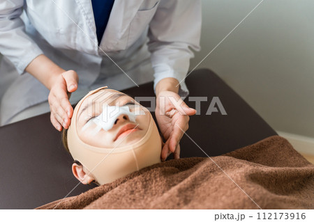 整形手術の術後・美容外科で整形手術を受けてダウンタイムを過ごす女性(経過観察)