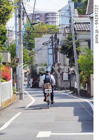 自転車警察官が地域をパトロールしている:地域密着の安心感