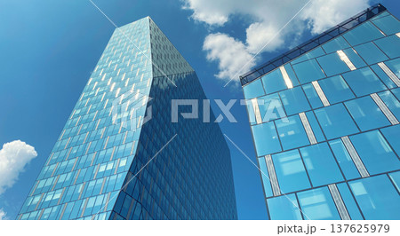 Office building. Glass skyscrapers in business center. Architecture, commercial real estate, sky